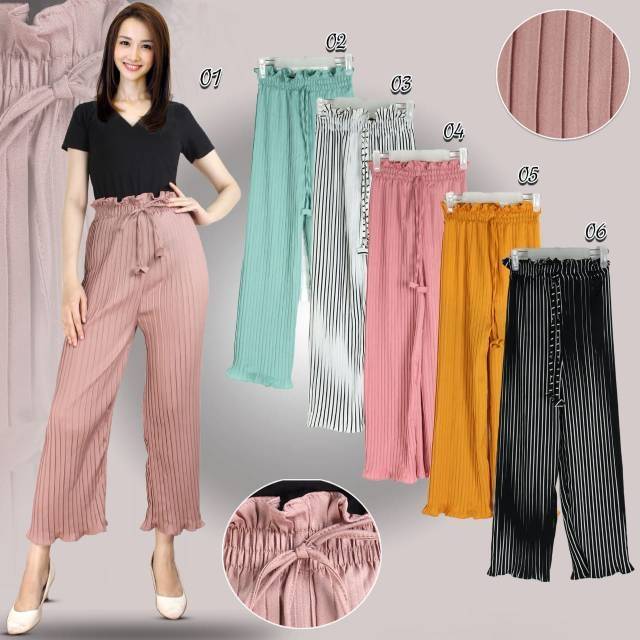 DF Celana Kulot Plisket Salur Premium Kulot Candy . Sumber Gambar : shopee.co.id